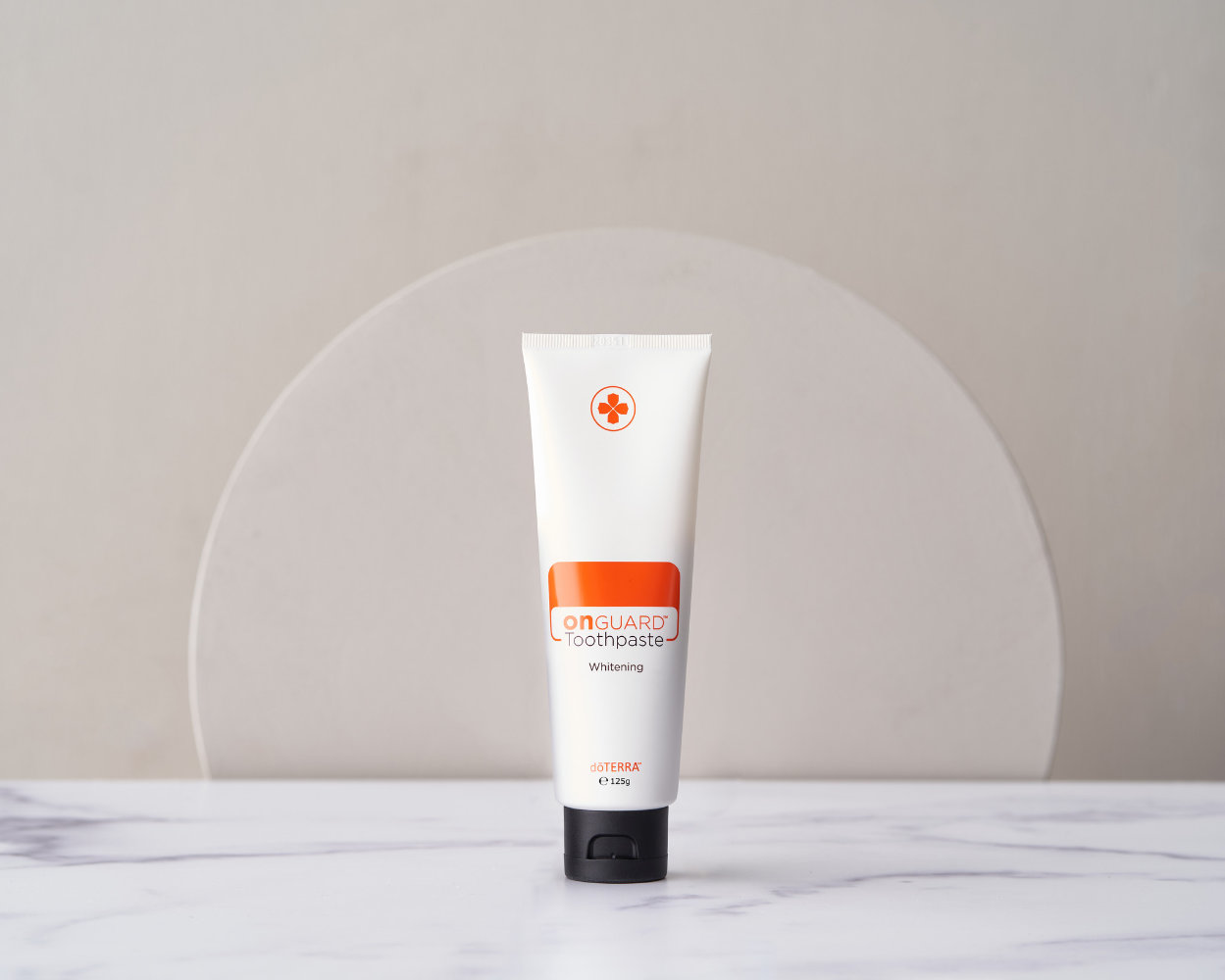 Unterstütze deine Zähne mit der reinen Kraft der Natur durch die doTERRA On Guard Toothpaste und lassen sie lange gesund und strahlend aussehen. Optimal zusammen mit der On Guard Mundspülung.